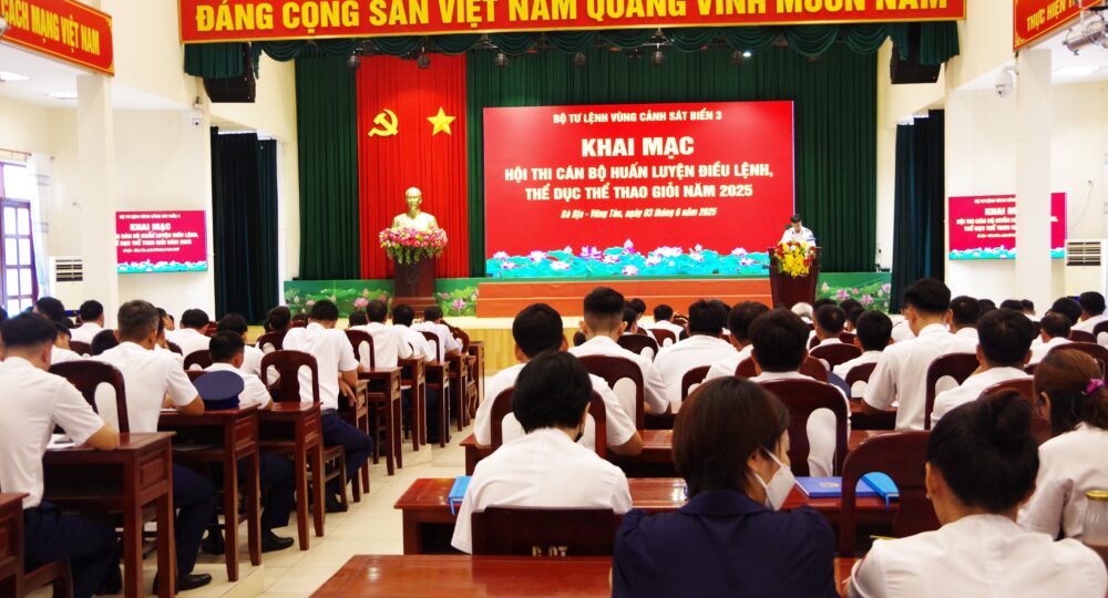 Sáng ngày 3/6, tại thành phố Vũng Tàu, Bộ Tư lệnh Vùng Cảnh sát biển 3 tổ chức khai mạc Hội thi Cán bộ huấn luyện điều lệnh, thể dục thể thao giỏi năm 2025. Đại tá Nguyễn Minh Khánh, Phó Tư lệnh, Tham mưu trưởng Bộ Tư lệnh Vùng dự và chỉ đạo hội thi.
