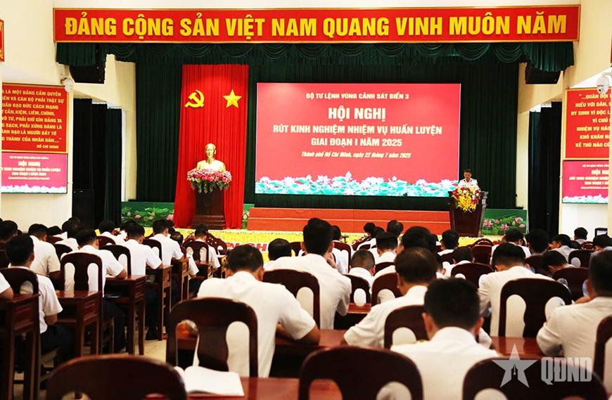Ngày 22-7, Bộ tư lệnh Vùng Cảnh sát biển 3 tổ chức Hội nghị rút kinh nghiệm công tác huấn luyện giai đoạn 1 năm 2025. Thiếu tướng Ngô Bình Minh, Tư lệnh Vùng Cảnh sát biển 3 chủ trì hội nghị.