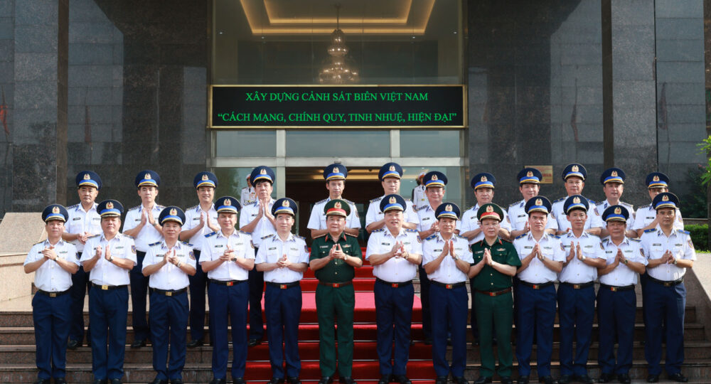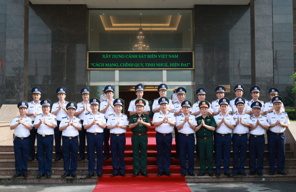 Thượng tướng Hoàng Xuân Chiến – Ủy viên Trung ương Đảng, Ủy viên Thường vụ Quân ủy Trung ương, Thứ trưởng Bộ Quốc phòng chụp ảnh lưu niệm cùng Thủ trưởng Bộ Tư lệnh và lãnh đạo, chỉ huy cơ quan, đơn vị Cảnh sát biển Việt Nam.