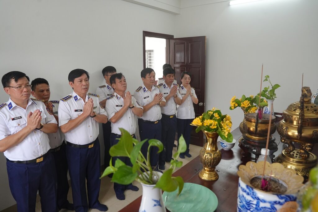 Trong không khí trang nghiêm, thành kính, Đoàn công tác đã kính cẩn nghiêng mình tưởng niệm, gửi gắm tình cảm, lòng biết ơn sâu sắc của cán bộ, chiến sĩ Cảnh sát biển Việt Nam đối với các liệt sĩ – những người đã hy sinh vì sự nghiệp bảo vệ Tổ quốc trong thời bình.