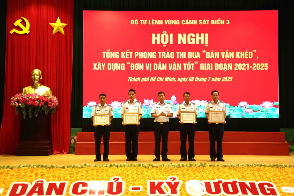 Thông qua các hoạt động dân vận, Bộ Tư lệnh Vùng Cảnh sát biển 3 đã xây dựng thế trận lòng dân vững chắc trên biển, tranh thủ sự phối hợp, giúp đỡ hiệu quả của cấp ủy, chính quyền, các lực lượng và nhân dân địa phương trong công tác giữ gìn an ninh, trật tự an toàn xã hội. Từ năm 2021 đến nay, toàn Vùng đã tiếp nhận, xử lý hơn 9.800 nguồn tin có giá trị, đấu tranh, điều tra, xử lý 97 vụ việc/1.465 ngư dân vi phạm vùng biển nước ngoài, xử lý 348 tàu cá, khởi tố 37 vụ án hình sự về ma túy. Những kết quả đó đã góp phần bảo vệ vững chắc chủ quyền, quyền chủ quyền, quyền tài phán quốc gia và bảo đảm trật tự, an toàn trên vùng biển, đảo được giao quản lý.