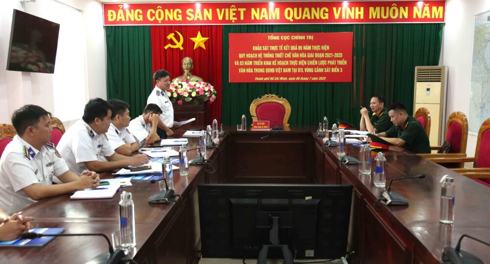 Ngày 8/7, đoàn công tác của Tổng cục Chính trị do Đại tá Mạc Văn Thường, Phó Trưởng phòng Văn hóa – Văn nghệ, Cục Tuyên huấn làm trưởng đoàn đã tiến hành kiểm tra kết quả thực hiện quy hoạch hệ thống thiết chế văn hóa và triển khai Thông tư số 138/2020/TT-BQP của Bộ Quốc phòng tại Bộ Tư lệnh Vùng Cảnh sát biển 3.