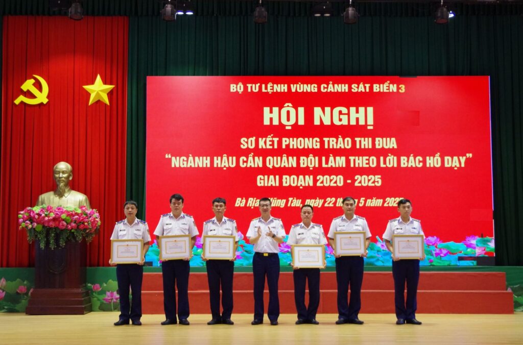 Nhân dịp này, Bộ Tư lệnh Vùng Cảnh sát biển 3 đã trao Giấy khen cho 6 tập thể và 13 cá nhân có thành tích xuất sắc trong thực hiện phong trào thi đua “Ngành Hậu cần Quân đội làm theo lời Bác Hồ dạy” giai đoạn 2020–2025, nhằm biểu dương, lan tỏa điển hình, tạo động lực thi đua cho giai đoạn tiếp theo.