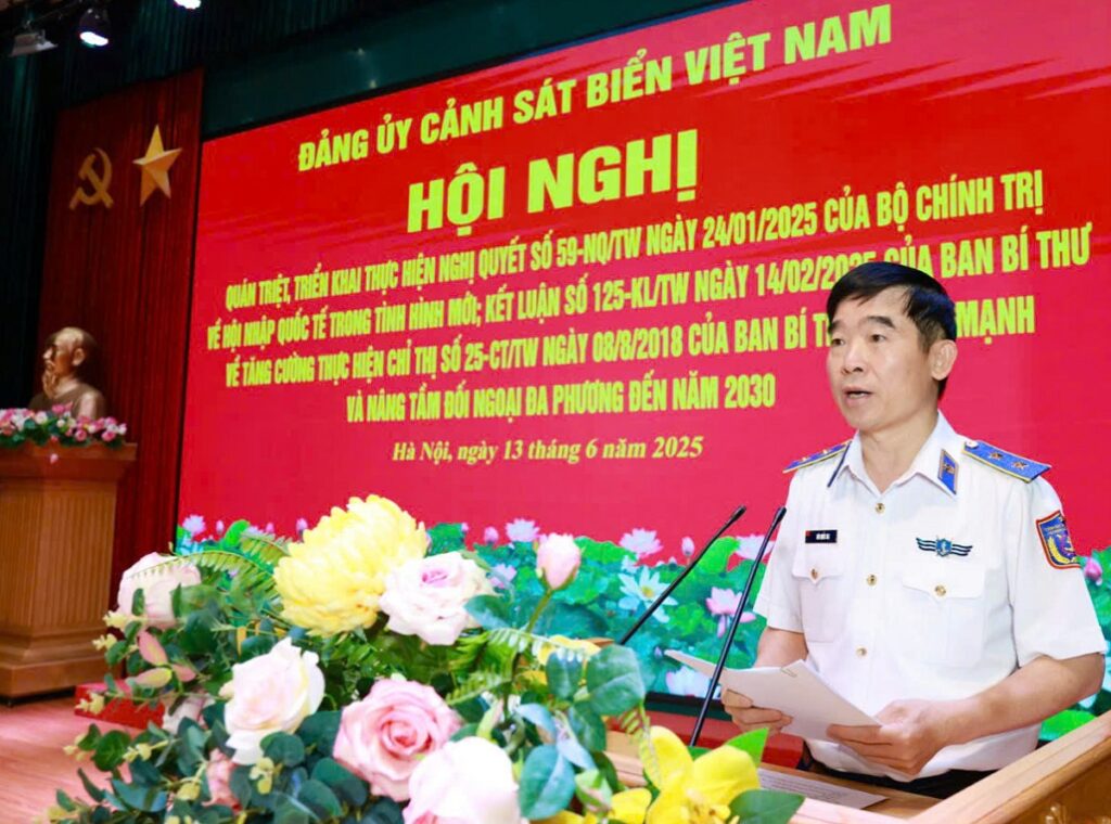 Chiều 13/6, Cảnh sát biển Việt Nam tổ chức Hội nghị quán triệt, triển khai thực hiện Nghị quyết số 59-NQ/TW ngày 24/01/2025 của Bộ Chính trị về hội nhập quốc tế trong tình hình mới; Kết luận số 125-KL/TW ngày 14/02/2025 của Ban Bí thư về tăng cường thực hiện Chỉ thị số 25-CT/TW ngày 8/8/2018 của Ban Bí thư về đẩy mạnh và nâng tầm đối ngoại đa phương đến năm 2030. Hội nghị được kết nối trực tuyến đến các điểm cầu trong toàn Lực lượng.